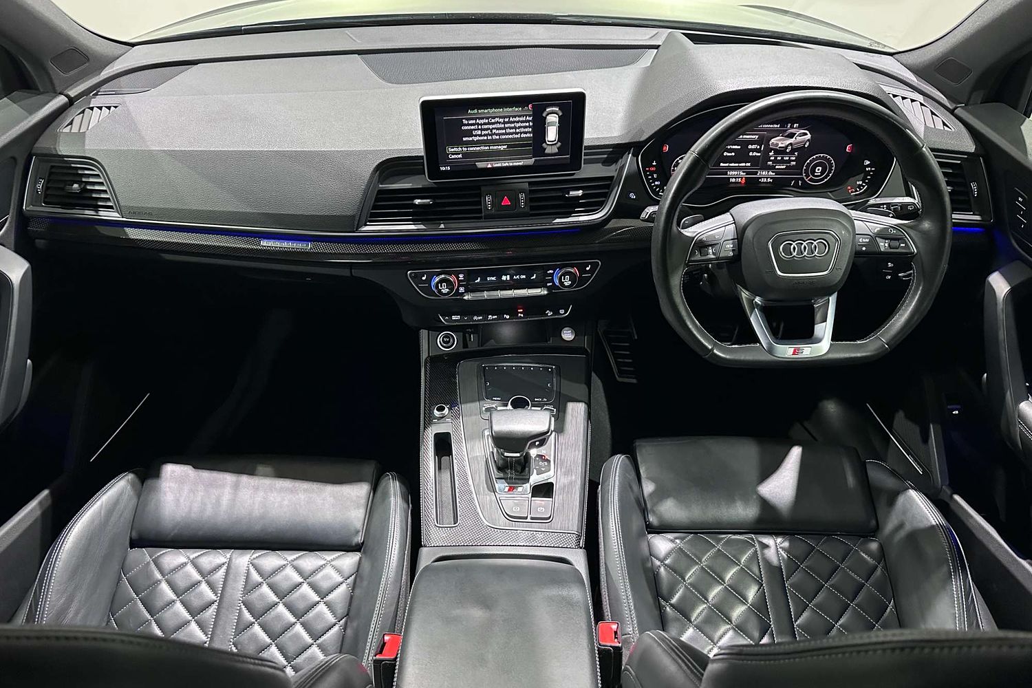 In terms of technology, the SQ5 is well-equipped with Audi's MMI Navigation Plus system, which includes a large touchscreen display, navigation, Apple CarPlay, Android Auto, and Bluetooth connectivity. The vehicle also boasts a premium Bang & Olufsen sound system, delivering an exceptional audio experience. The Audi Virtual Cockpit, a fully digital 12.3-inch instrument cluster, offers customizable displays for navigation, media, and vehicle information, providing a high-tech and user-friendly interface.