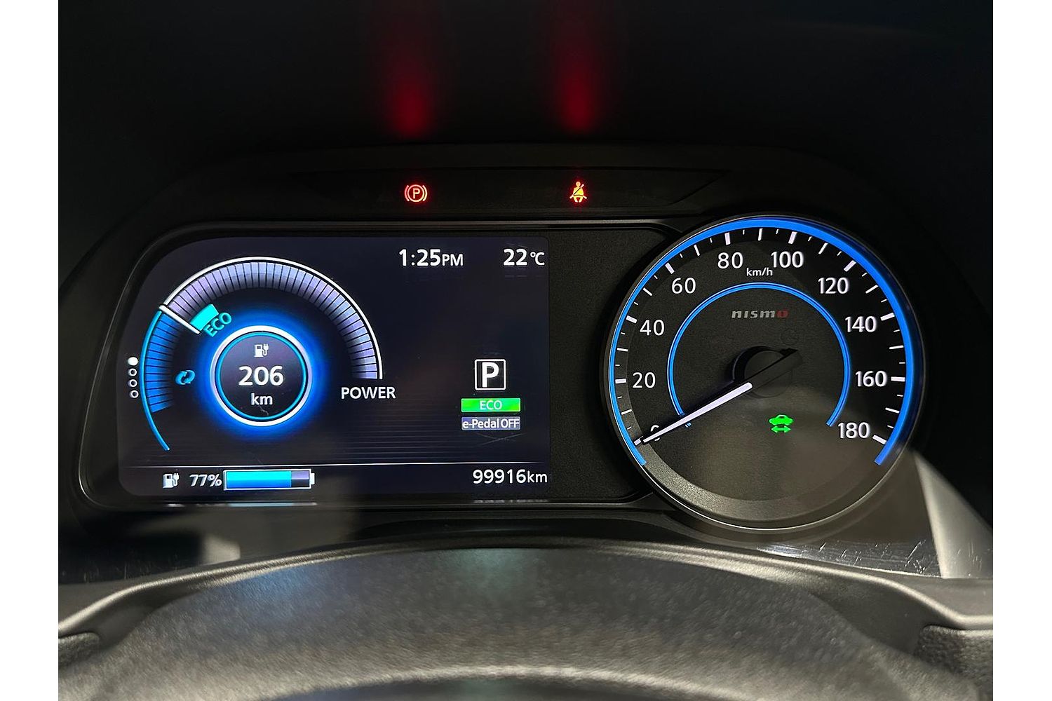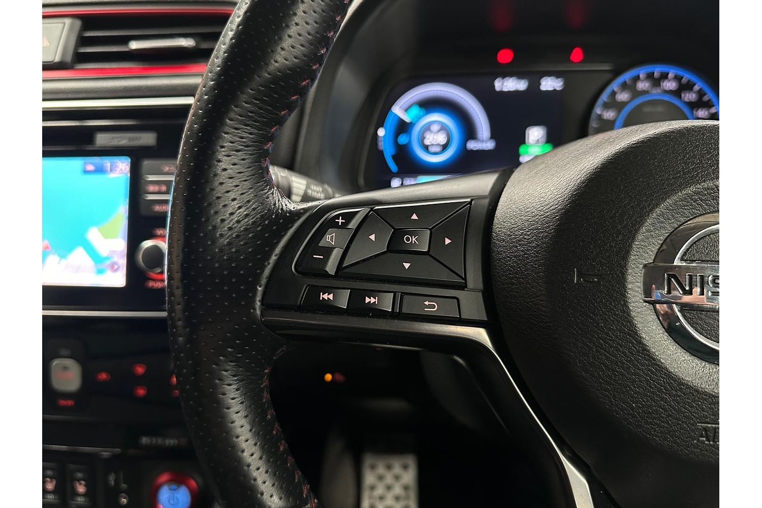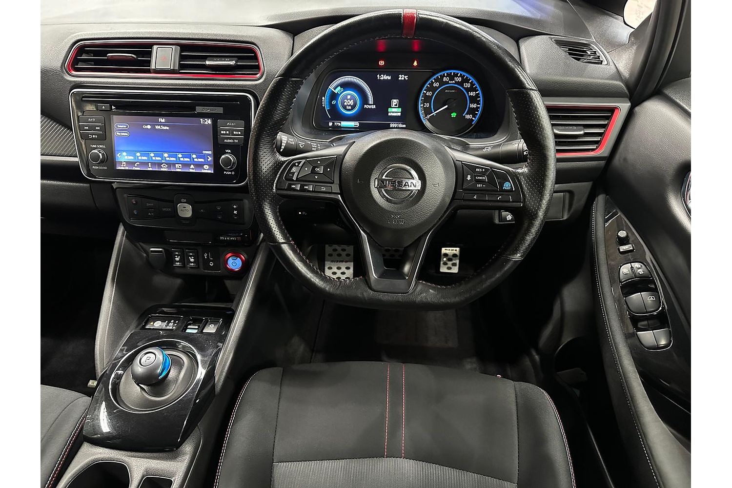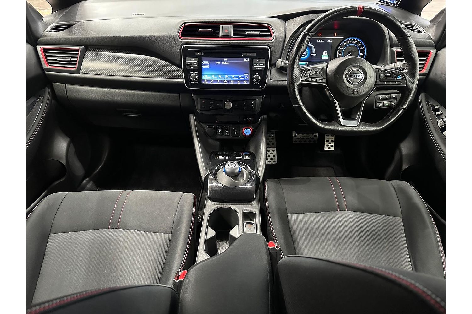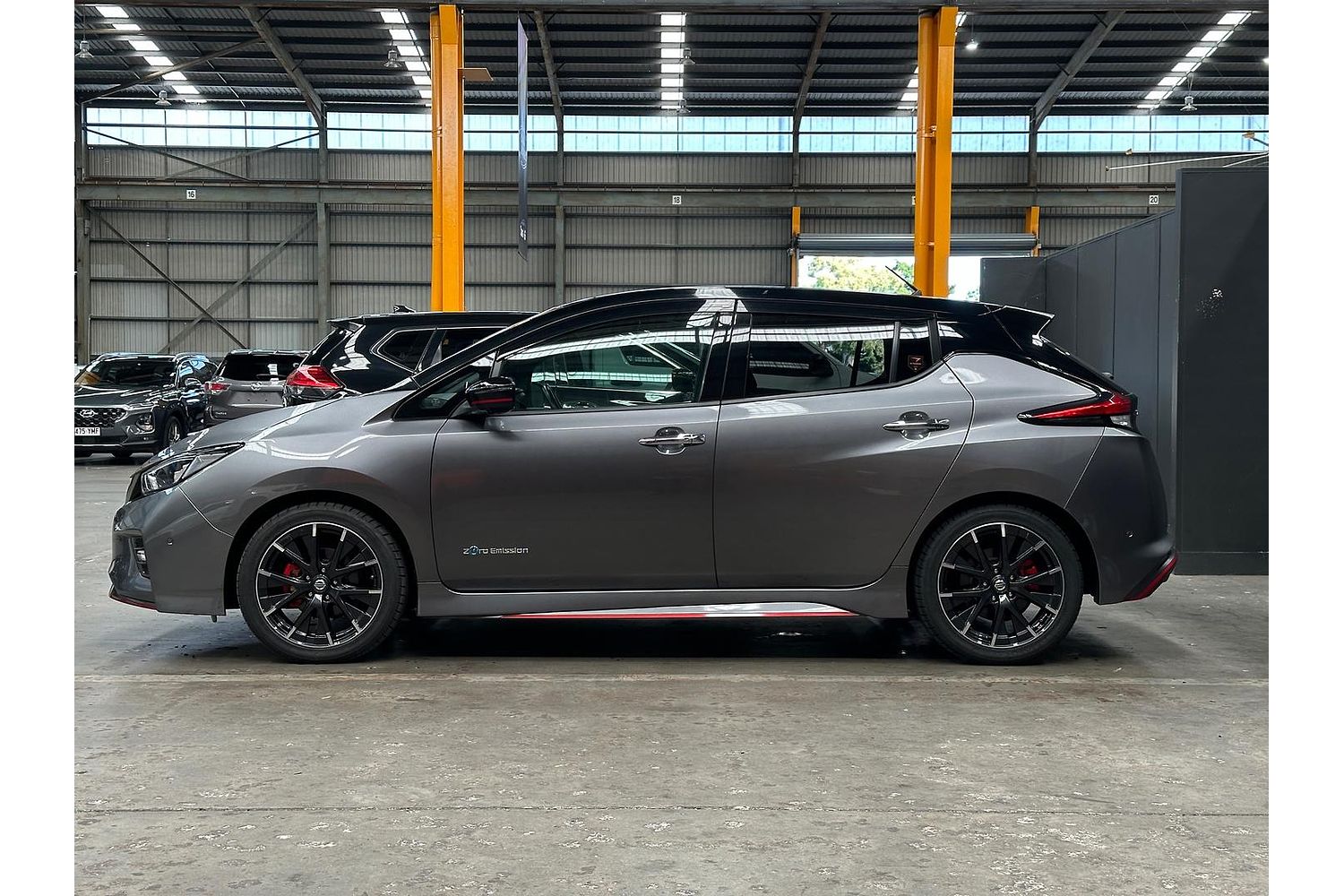 This is the Nismo version which has a perkier tune on the motor, wider 18 inch wheels, redesigned bumper, interior & exterior trim bits and badging to differentiate it from regular Leafs.