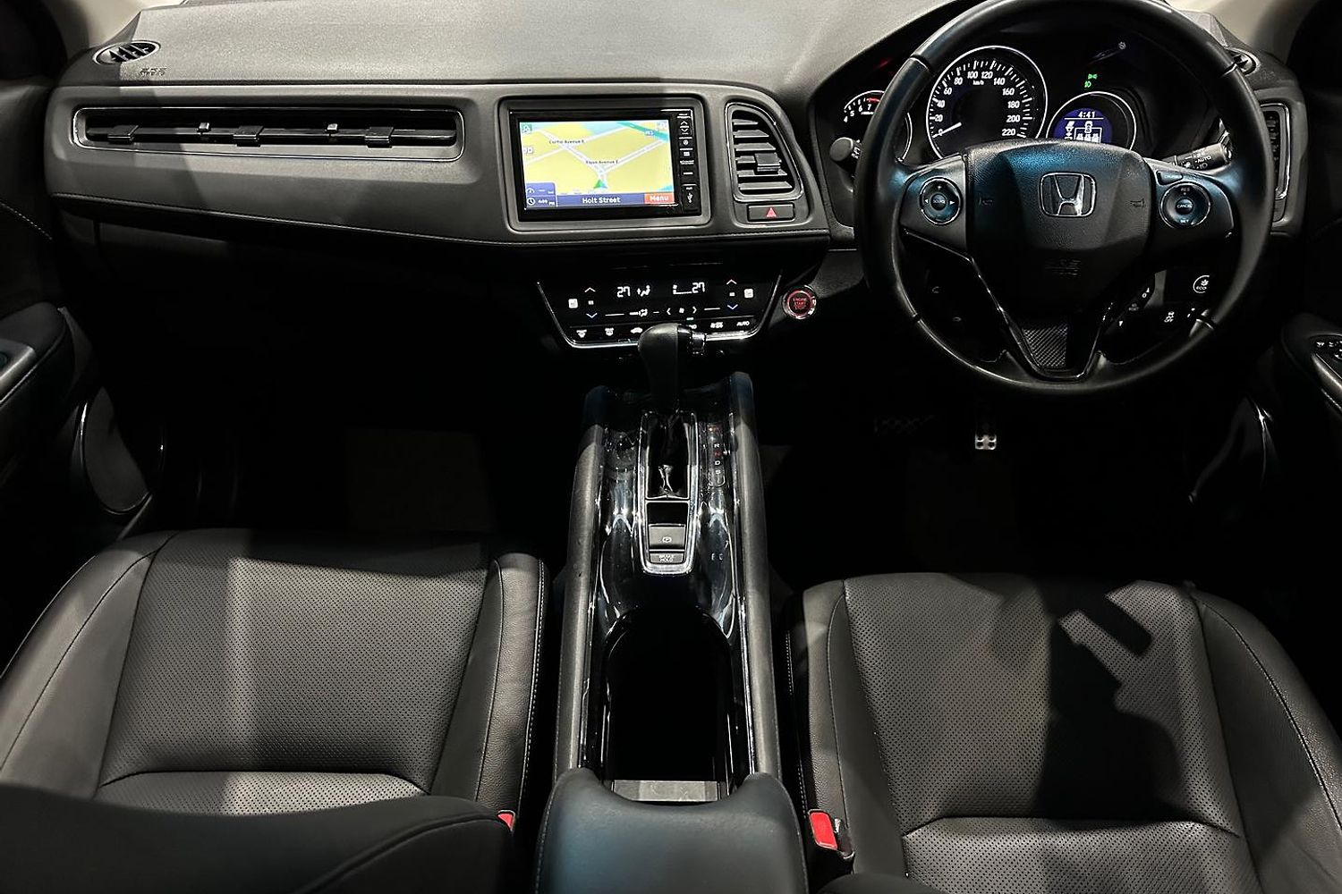 Inside, the HR-V VTi-LX offers a comfortable and refined cabin with a range of convenience features. The interior includes leather upholstery, heated front seats, dual-zone automatic climate control, and a leather-wrapped steering wheel. The vehicle also comes equipped with a touchscreen infotainment system, satellite navigation, Bluetooth connectivity, and a premium sound system for added comfort and entertainment.