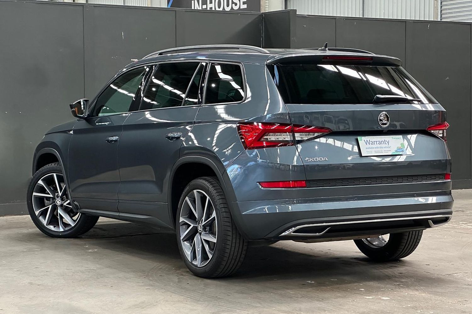 The exterior of the Kodiaq Sportline is distinguished by its sporty and elegant design. The SUV features a bold front grille, sleek LED headlights, and 20-inch alloy wheels that contribute to its dynamic appearance. The Sportline trim includes distinctive design elements such as black exterior accents and sportier styling cues, enhancing its athletic look.