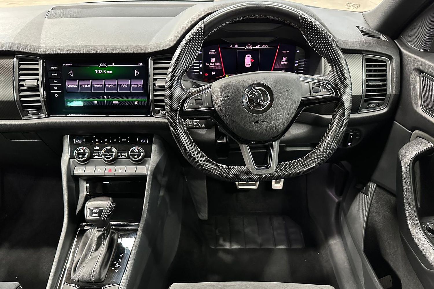 The Kodiaq Sportline is equipped with a range of advanced technology features. The infotainment system includes an 8-inch touchscreen display with Apple CarPlay and Android Auto compatibility, allowing seamless integration with smartphones for navigation, media, and communication. Bluetooth connectivity is also included for hands-free calling and audio streaming.