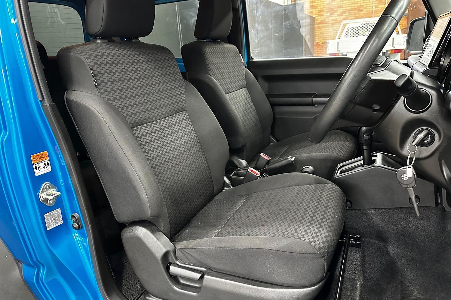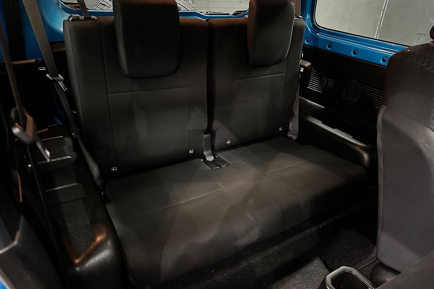 Inside, the Jimny GLX offers a functional and straightforward cabin with a focus on durability and ease of use. The upright seating position provides excellent visibility, and the simple dashboard layout ensures that controls are within easy reach. Despite its compact size, the Jimny offers comfortable seating for four passengers, and the rear seats can be folded down to create additional cargo space, making it practical for carrying gear and supplies.