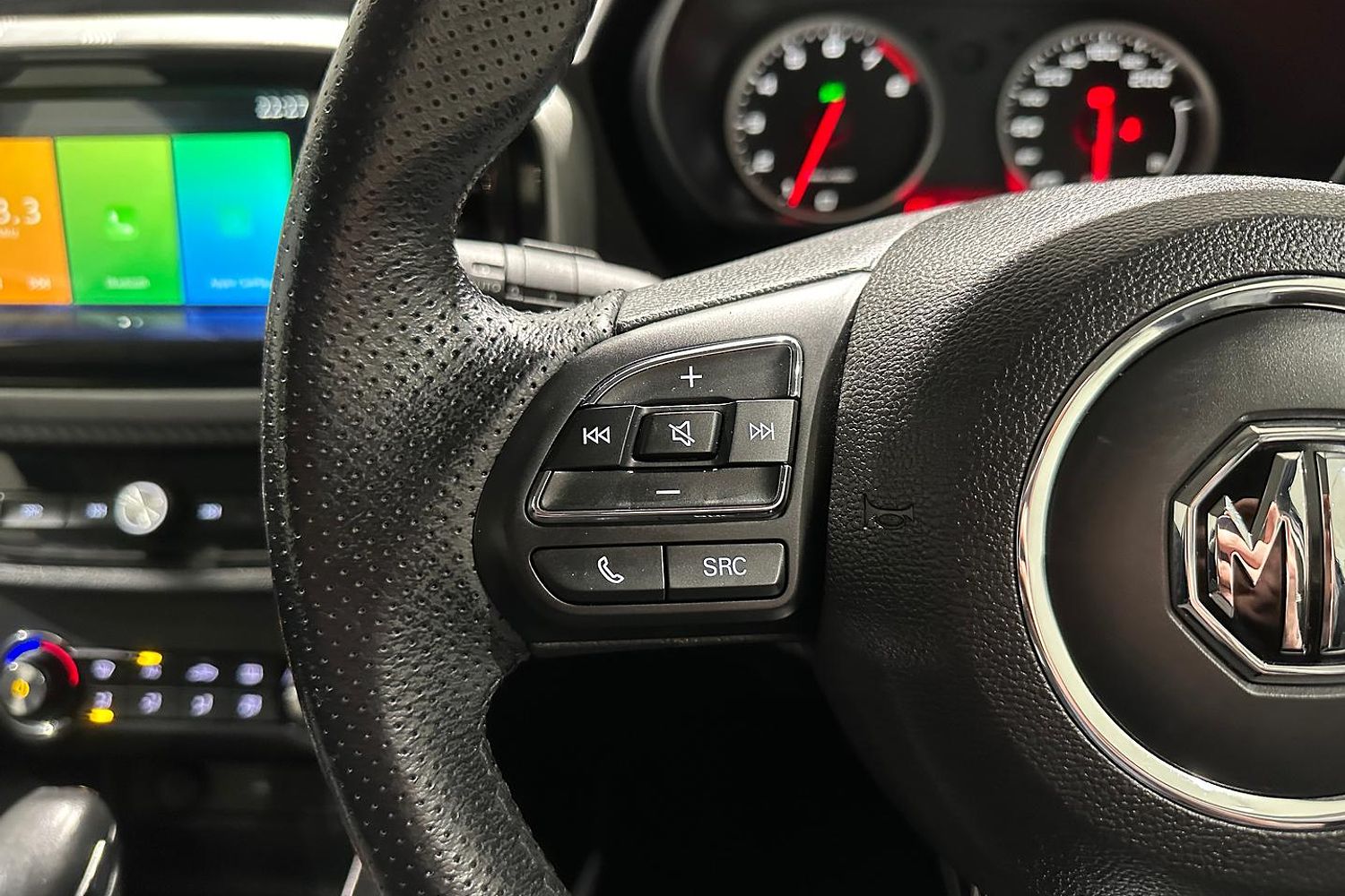 Inside, the MG3 Core offers a practical and comfortable cabin with seating for five. The interior includes fabric upholstery and a well-organized layout. It features a 8-inch touchscreen infotainment system with Apple CarPlay and Android Auto for seamless smartphone integration. Other amenities include Bluetooth connectivity, a four-speaker audio system, and manual air conditioning.