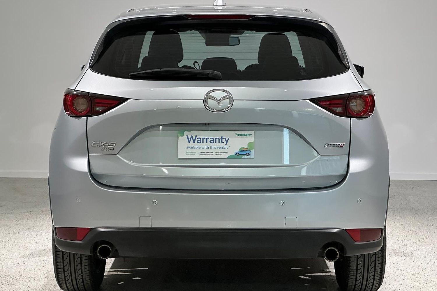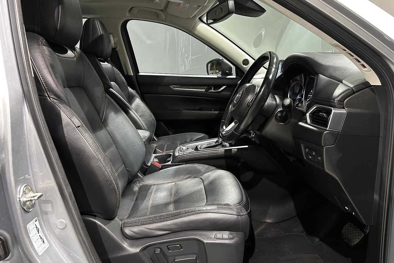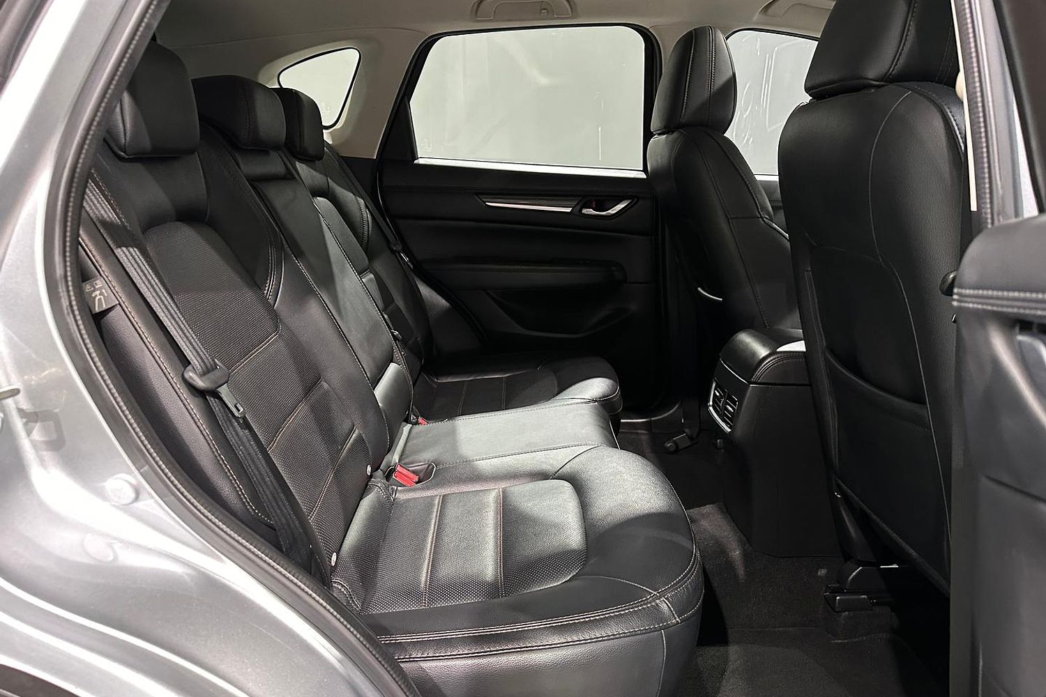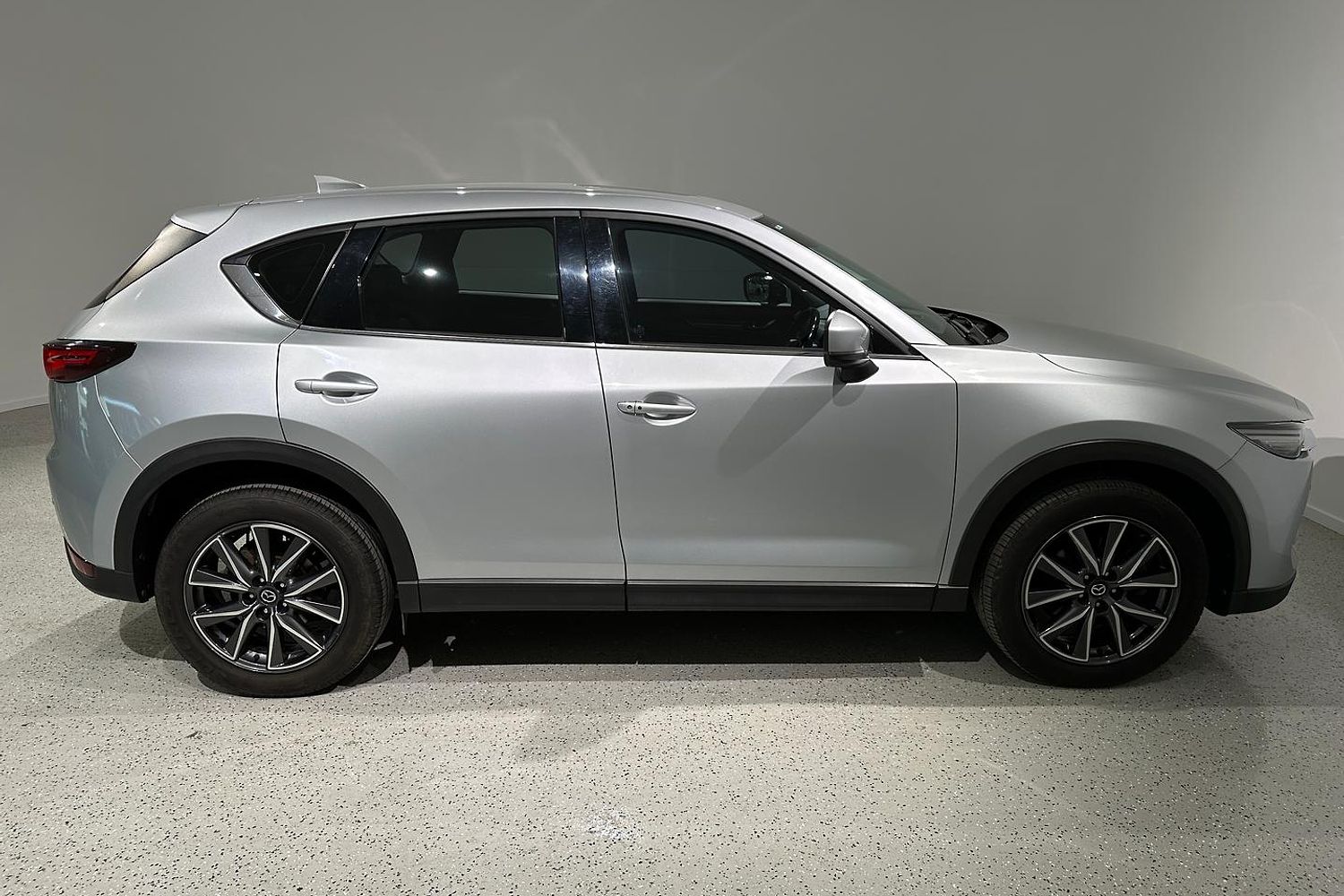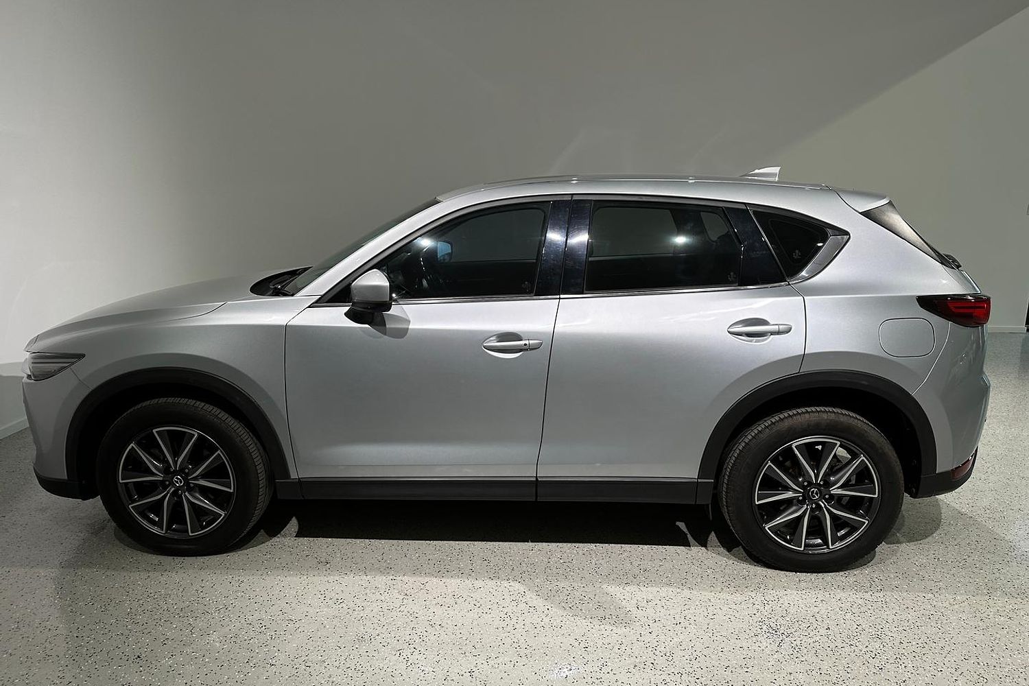 The exterior design of the CX-5 GT is both elegant and sporty, characterized by Mazda's KODO design language. It boasts a bold front grille, sleek LED headlights with auto on/off functionality, and 19-inch alloy wheels that give it a commanding road presence. The integrated roof rails and a rear spoiler add to its practical and stylish appeal, while the power tailgate provides convenience for loading and unloading cargo.