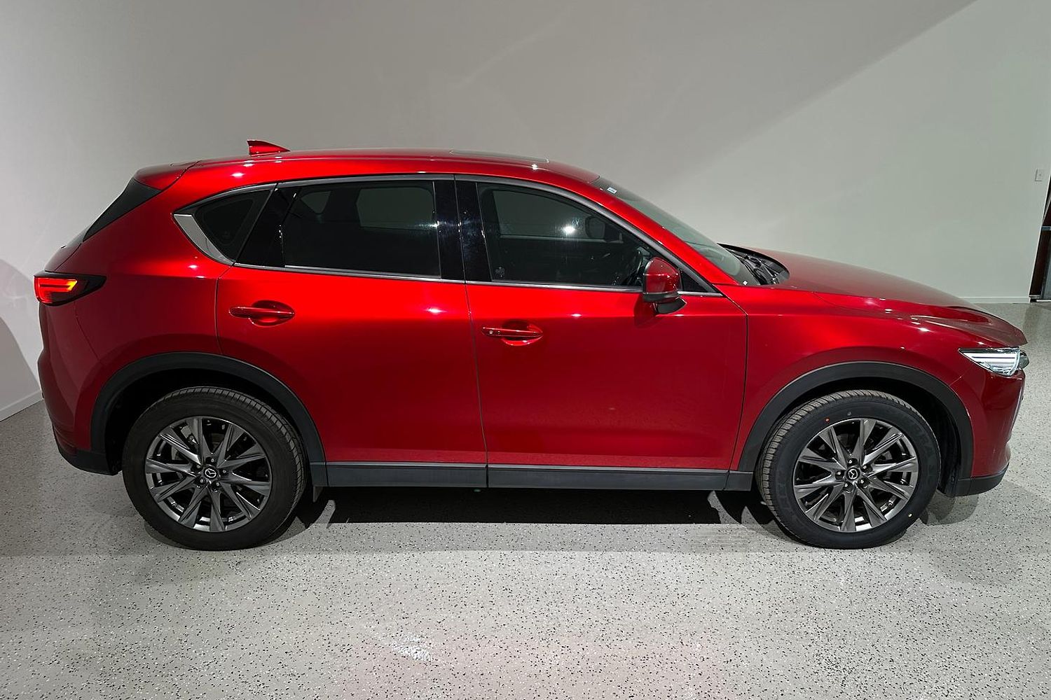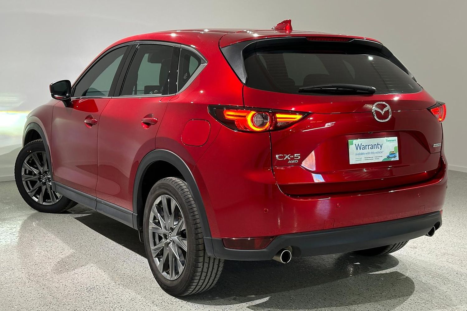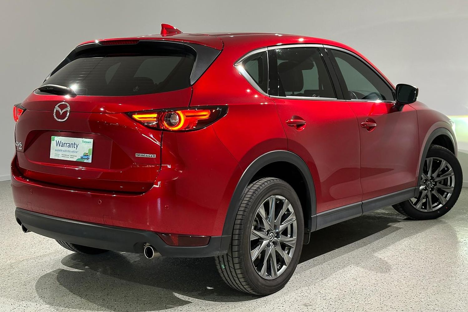 Externally, the CX-5 Akera stands out with its sleek and dynamic design, characterized by Mazda's KODO design philosophy. The front features a bold grille flanked by adaptive LED headlights, while the 19-inch alloy wheels and chrome accents add to its premium appearance. The body is sculpted for aerodynamic efficiency, and the rear is marked by dual exhaust outlets and LED tail lights, giving it a sporty yet sophisticated look.