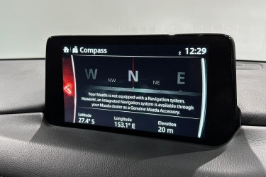 Safety is a priority in the Akera, equipped with Mazda’s i-ACTIVSENSE suite of advanced safety features. These include adaptive cruise control with stop-and-go functionality, autonomous emergency braking, blind-spot monitoring, rear cross-traffic alert, lane departure warning with lane keep assist, and a 360-degree view monitor for enhanced visibility during parking and low-speed maneuvers. The vehicle also features driver attention alert and traffic sign recognition, adding an extra layer of safety.