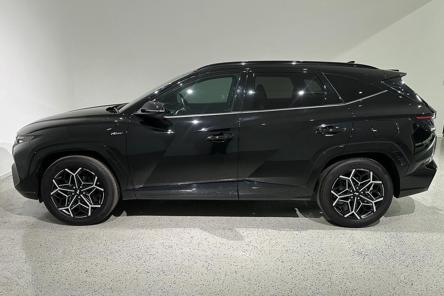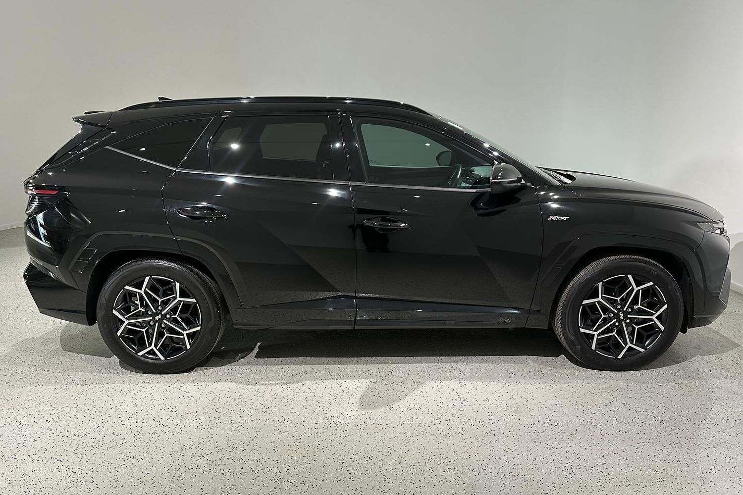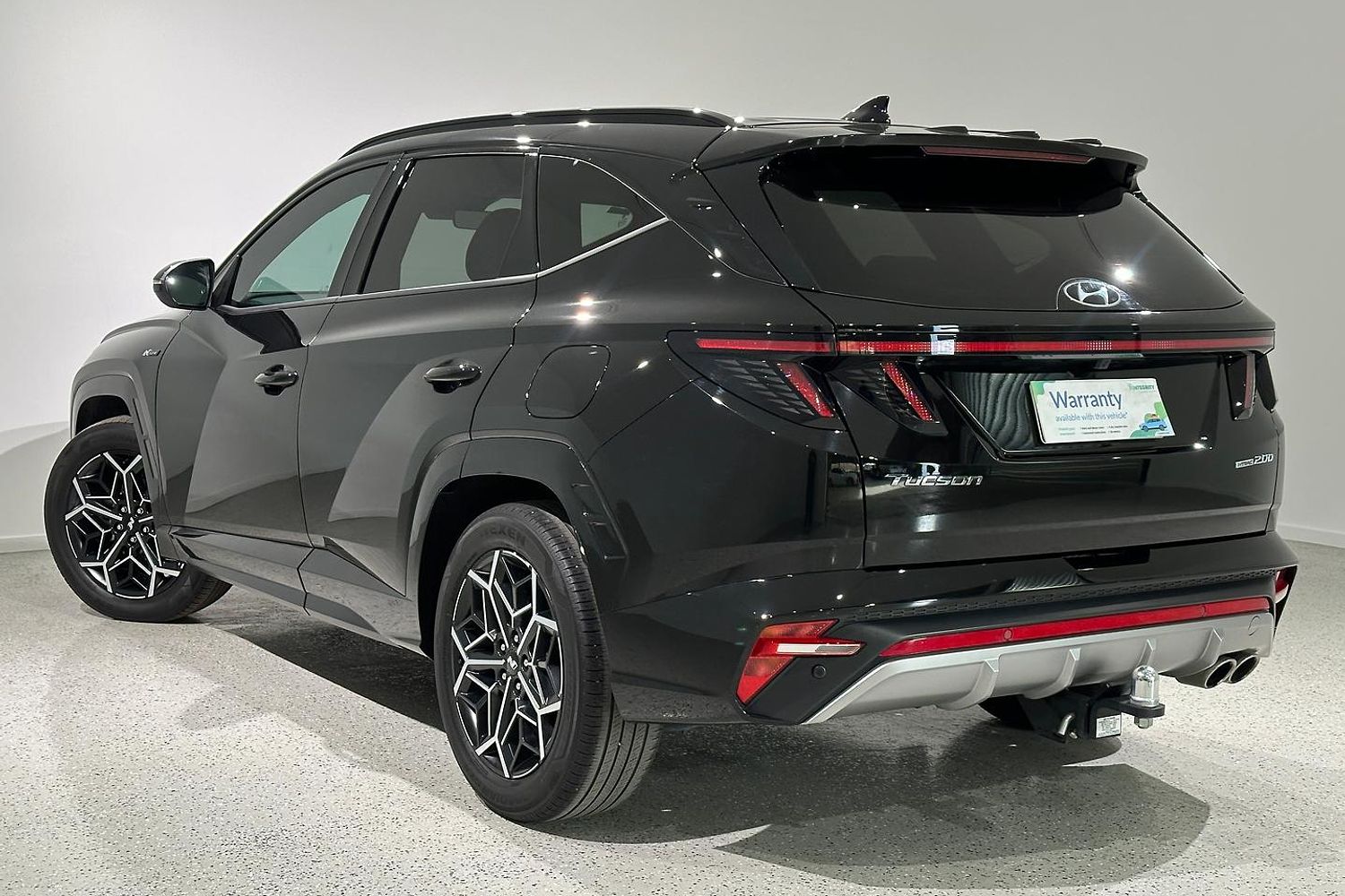 The Tucson N Line features a bold and dynamic design that sets it apart from the standard models. The N Line trim adds sportier styling elements, including a unique front grille, more aggressive front and rear bumpers, and blacked-out exterior accents. The 19-inch alloy wheels and dual exhaust tips further enhance its sporty appearance.