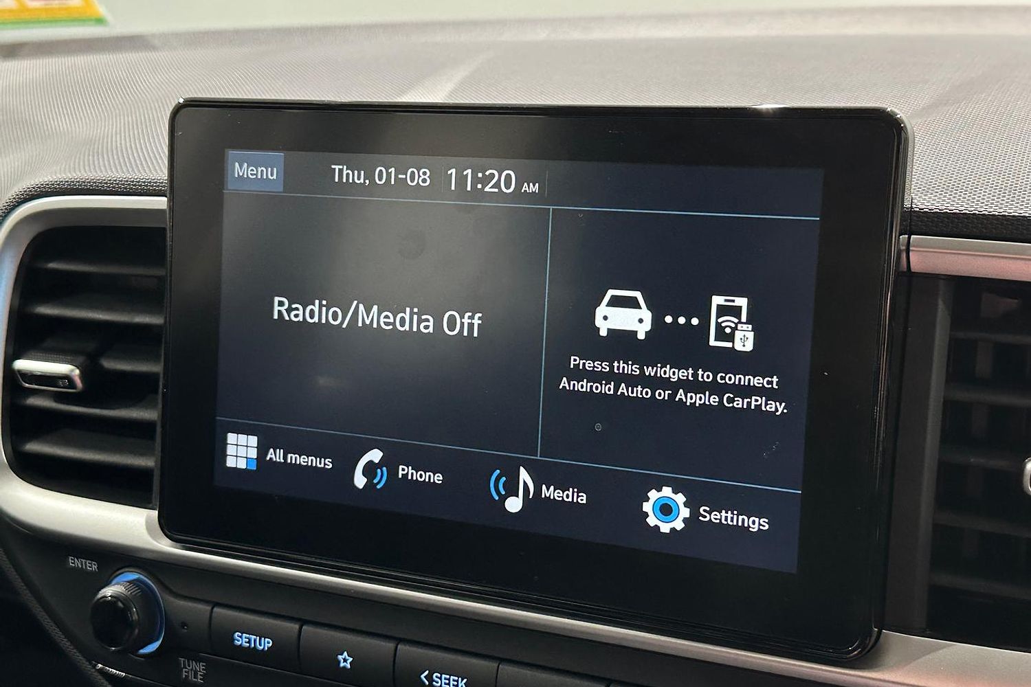 The infotainment system is centered around a large touchscreen display, which includes Apple CarPlay and Android Auto compatibility, ensuring seamless connectivity for your smartphone. The Venue also offers a range of tech features, including a rearview camera, Bluetooth connectivity, and multiple USB ports, making it a well-equipped vehicle for its class.