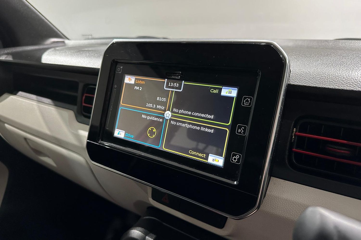 Inside, the Ignis GL offers a surprisingly spacious cabin for its compact size, with seating for five passengers. The interior is simple but functional, featuring cloth upholstery and a straightforward dashboard layout. The infotainment system includes a basic audio setup with Bluetooth connectivity and USB input, allowing for hands-free calls and music streaming. The rear seats can be folded down to expand the cargo area, adding to the car's practicality.