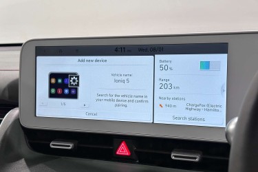 This sleek 2023 Hyundai IONIQ 5 offers a perfect blend of style and sustainability. The automatic transmission provides a smooth driving experience, while the spacious interior ensures comfort for all passengers. With advanced features like Lane Departure Warning and Lane Keeping Active Assist, this vehicle prioritizes safety on the road. Stay connected on the go with Bluetooth, Android Auto, and Apple CarPlay. Experience luxury with Electric Seats, Heated Seats, and Keyless Start. Don't miss out on this eco-friendly and tech-savvy car!