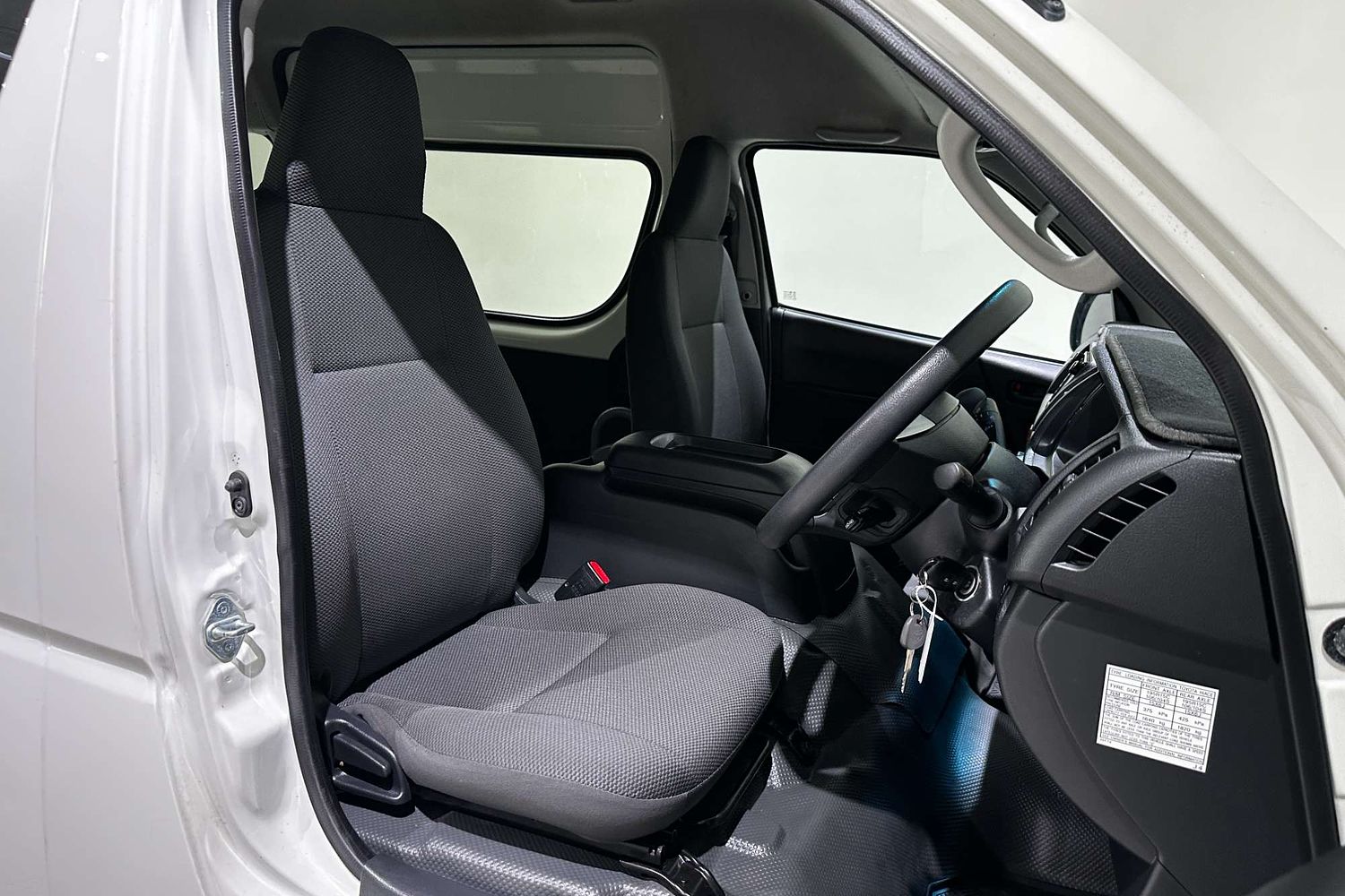 – Cloth-trimmed seats with vinyl flooring for durability