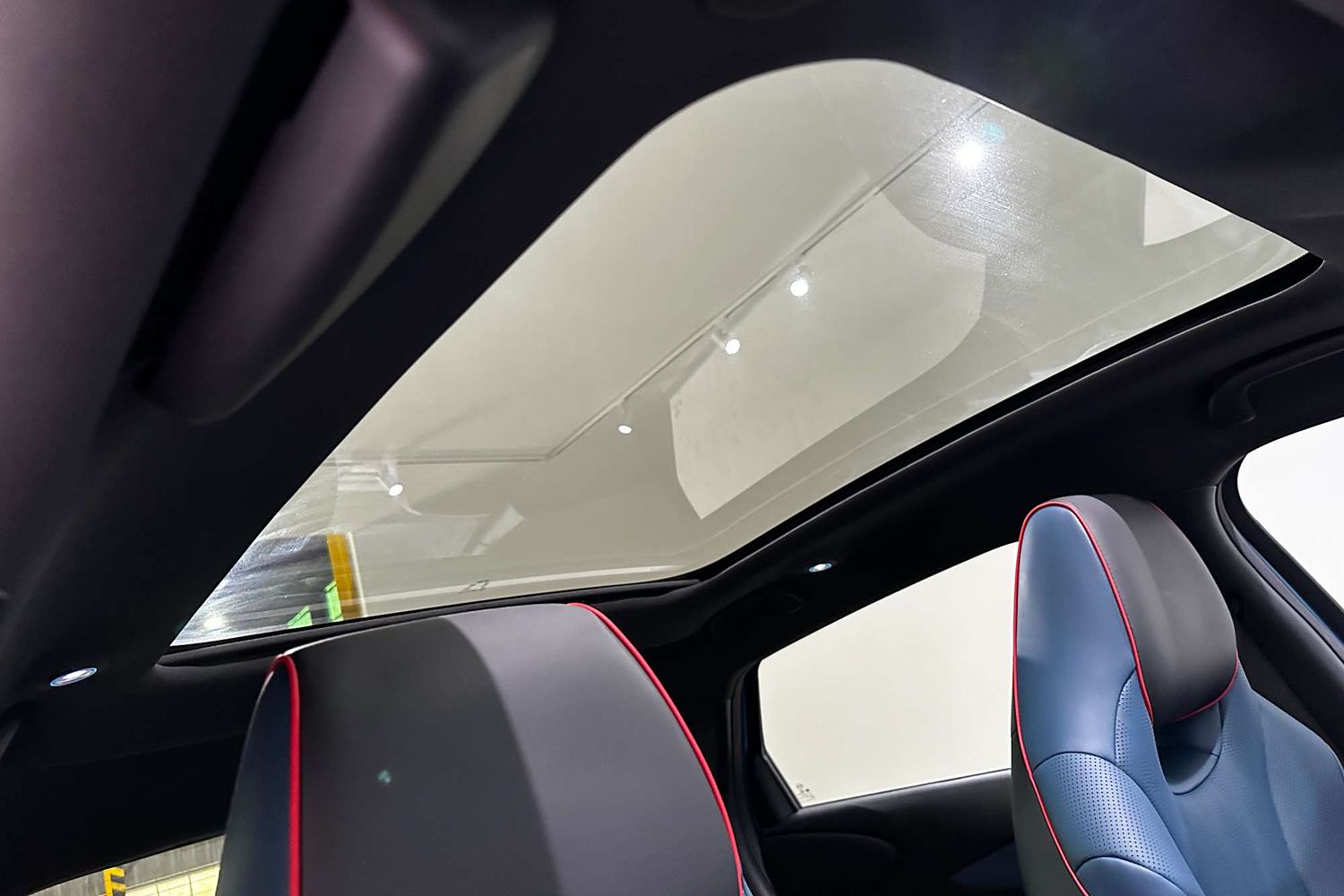 •	MODERN PANORAMIC GLASS ROOF ENHANCING NATURAL LIGHT AND SPACIOUSNESS