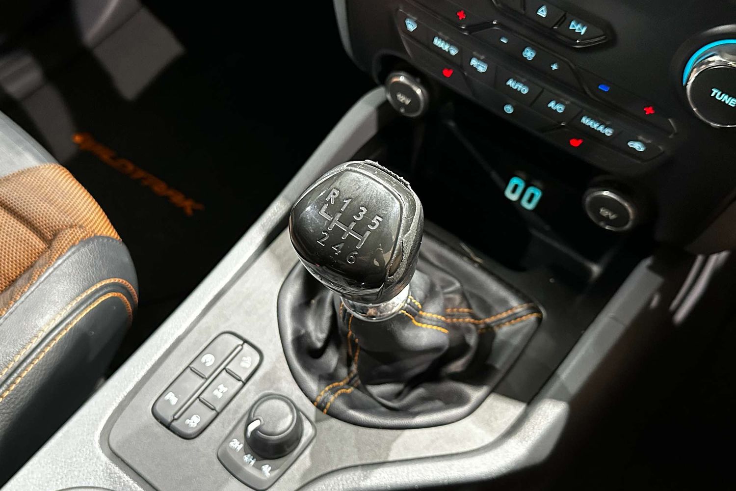 • SIGNATURE WILDTRAK INTERIOR WITH LEATHER-ACCENTED SEATING AND ORANGE STITCHING