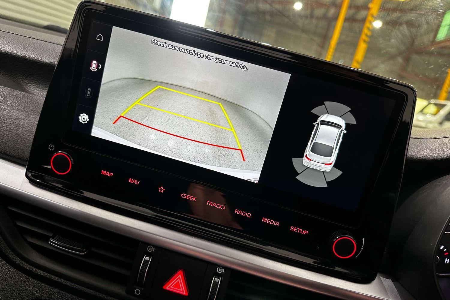 – Reversing camera with rear parking sensors
