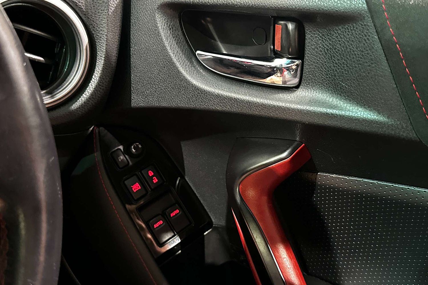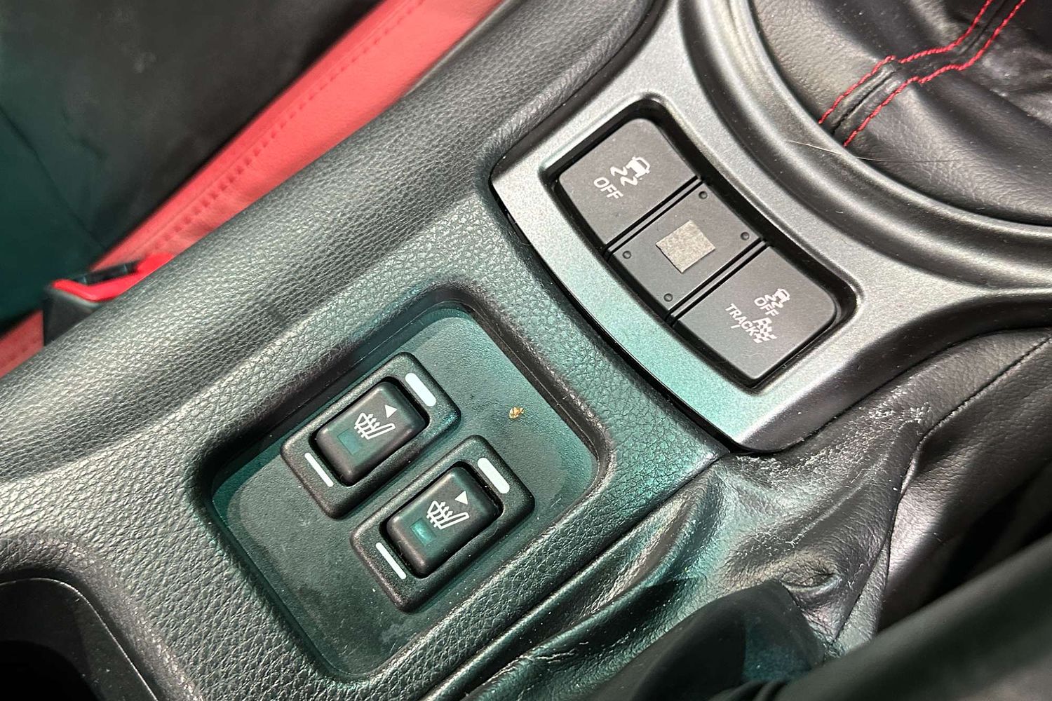 – Leather and Alcantara sports seats with red stitching