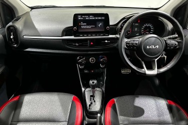 Compact, sporty, and full of personality, the 2022 Kia Picanto GT-Line delivers city-friendly agility with stylish flair. Its efficient 1.25-litre petrol engine and smooth automatic transmission make urban driving effortless, while the GT-Line enhancements add a premium and athletic touch inside and out.