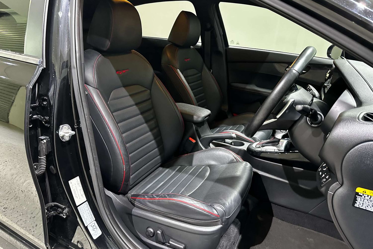 – Leather-appointed seats with red contrast stitching