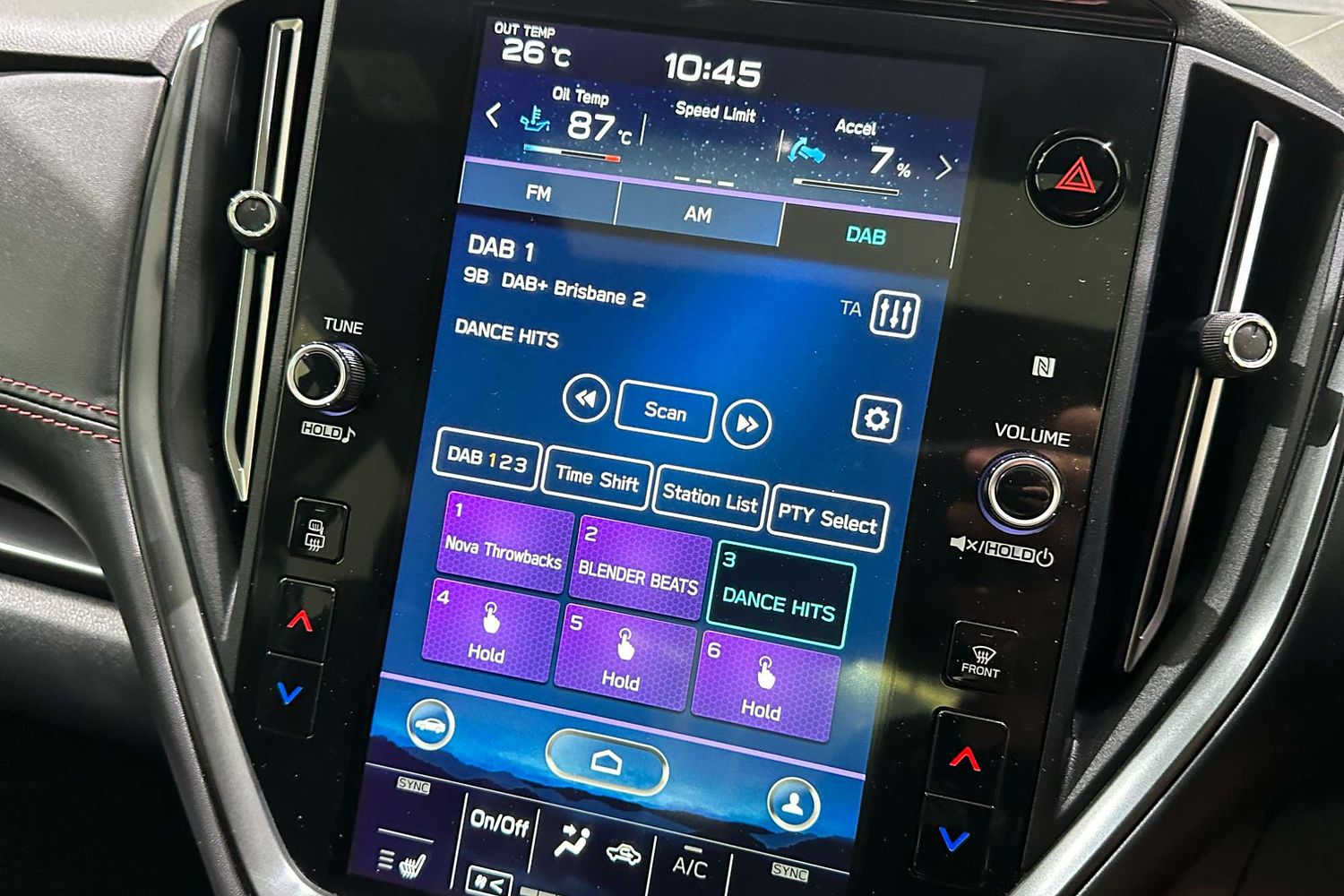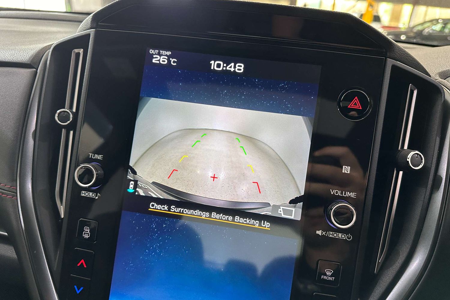 – Large vertical touchscreen infotainment display