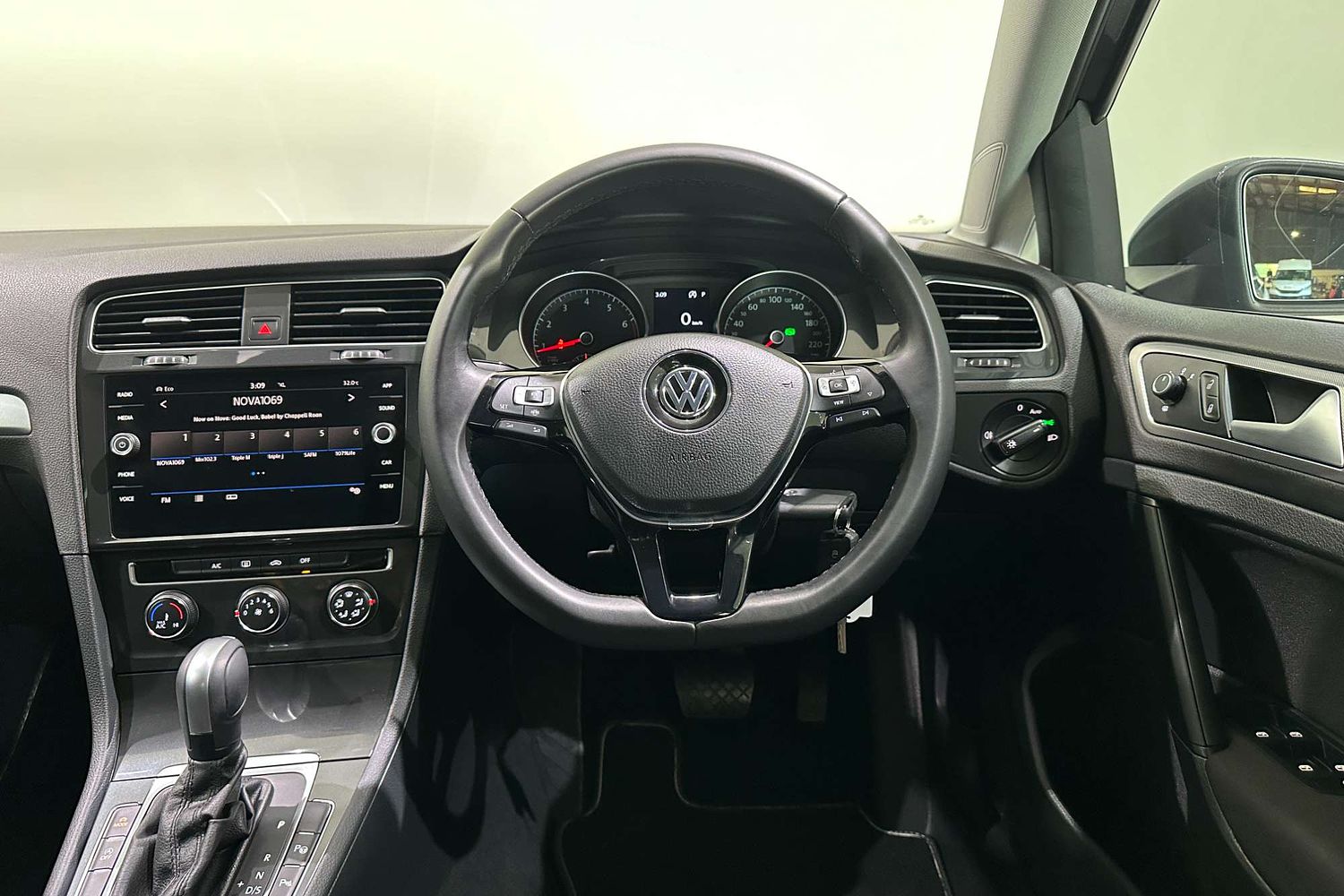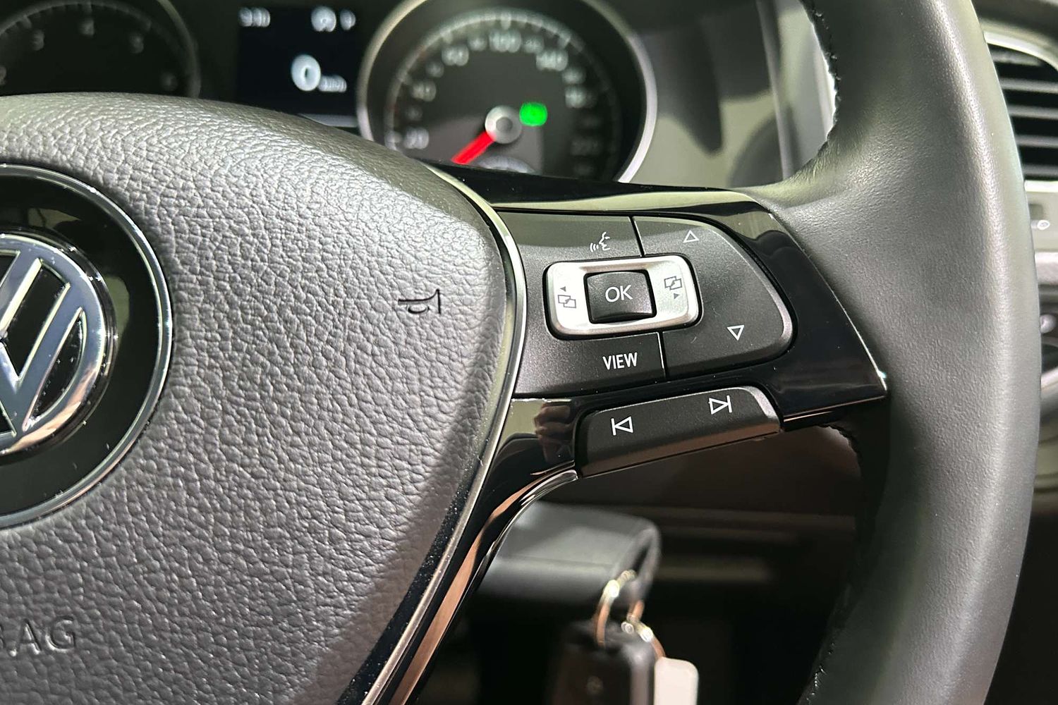 – Leather-wrapped multifunction steering wheel
