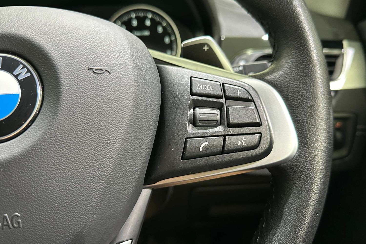 – Leather-wrapped multifunction steering wheel