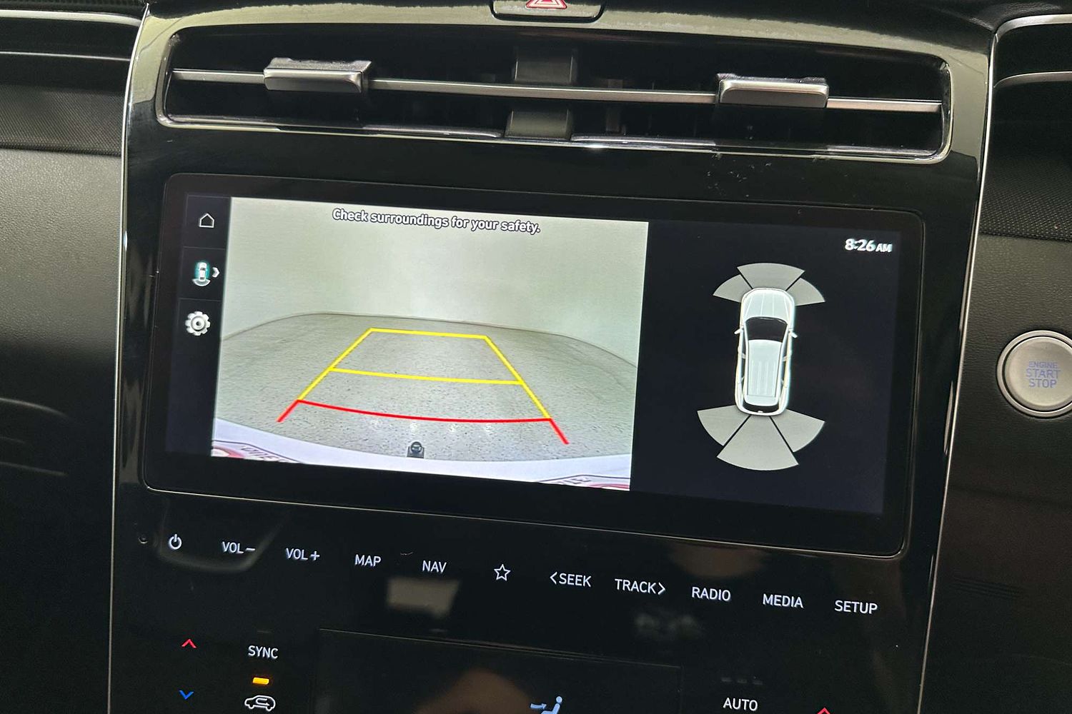 – Reversing camera with rear parking sensors