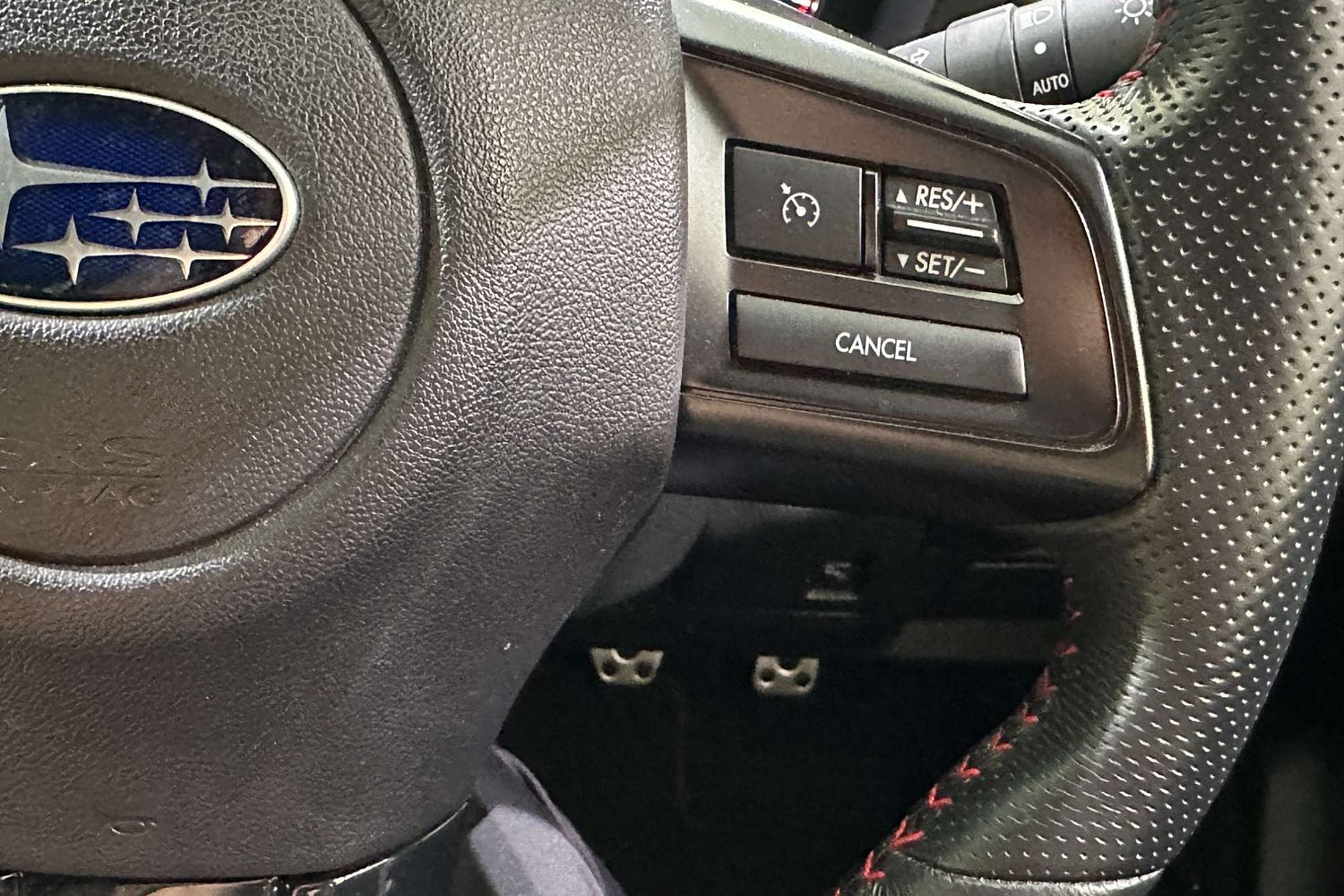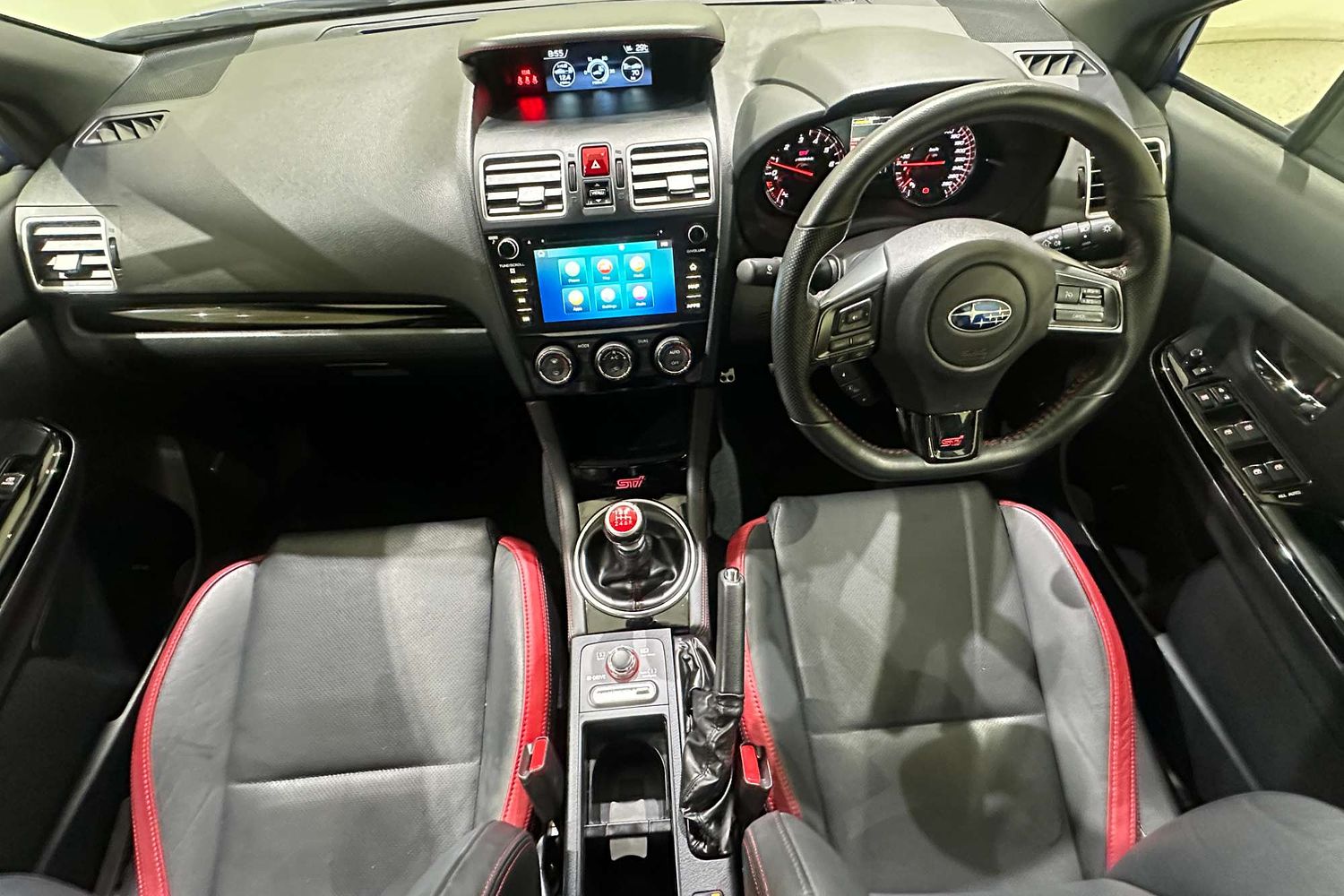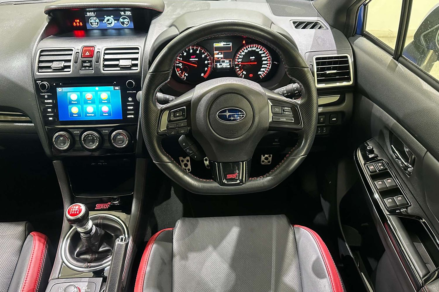 – Sports steering wheel with STI branding