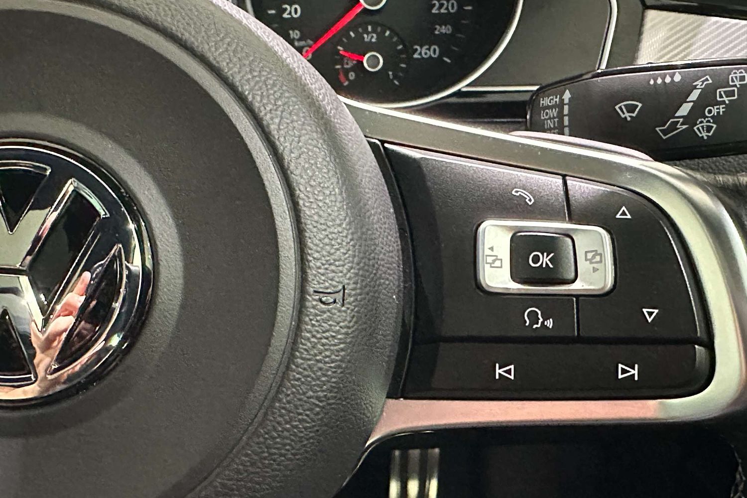 – Leather-wrapped multifunction steering wheel