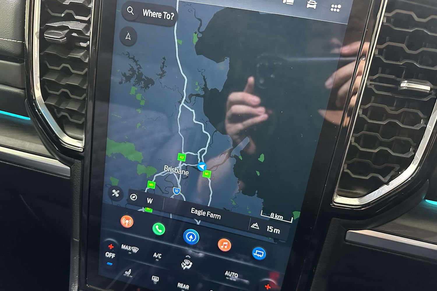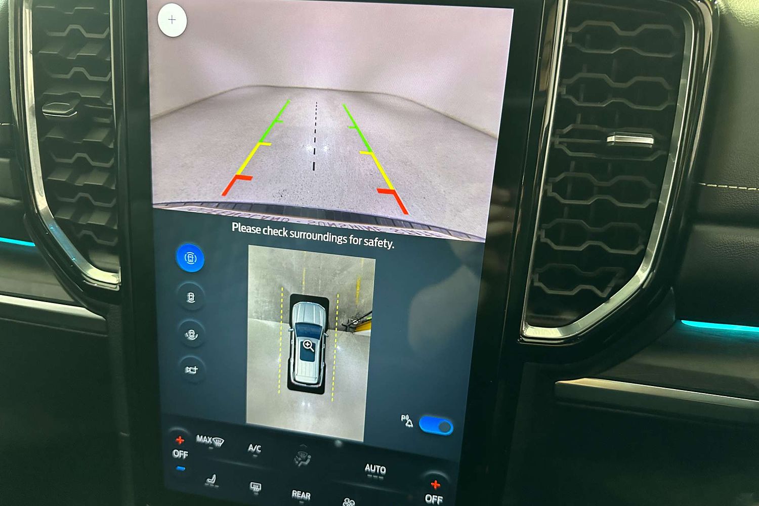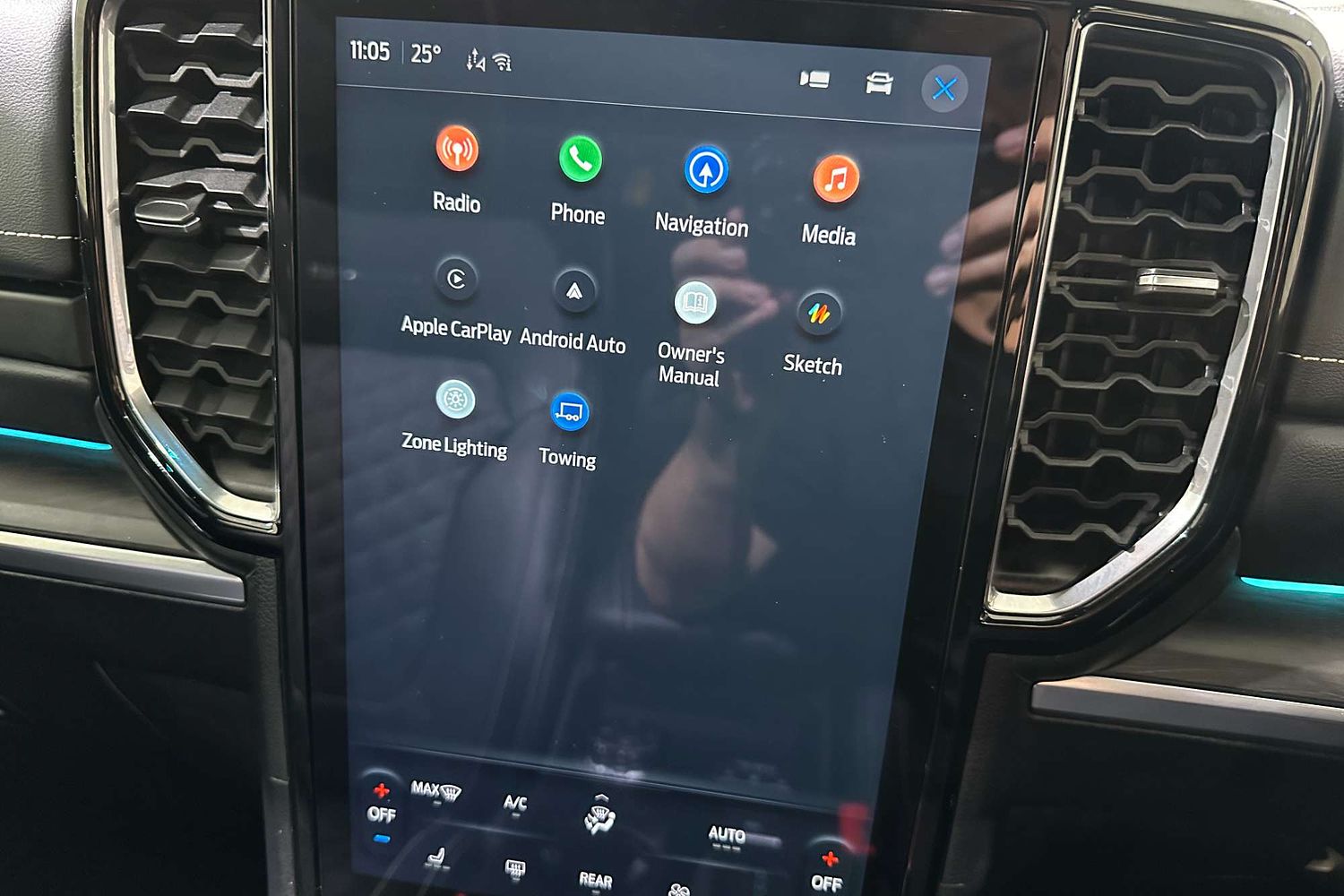 – Large vertical touchscreen infotainment system