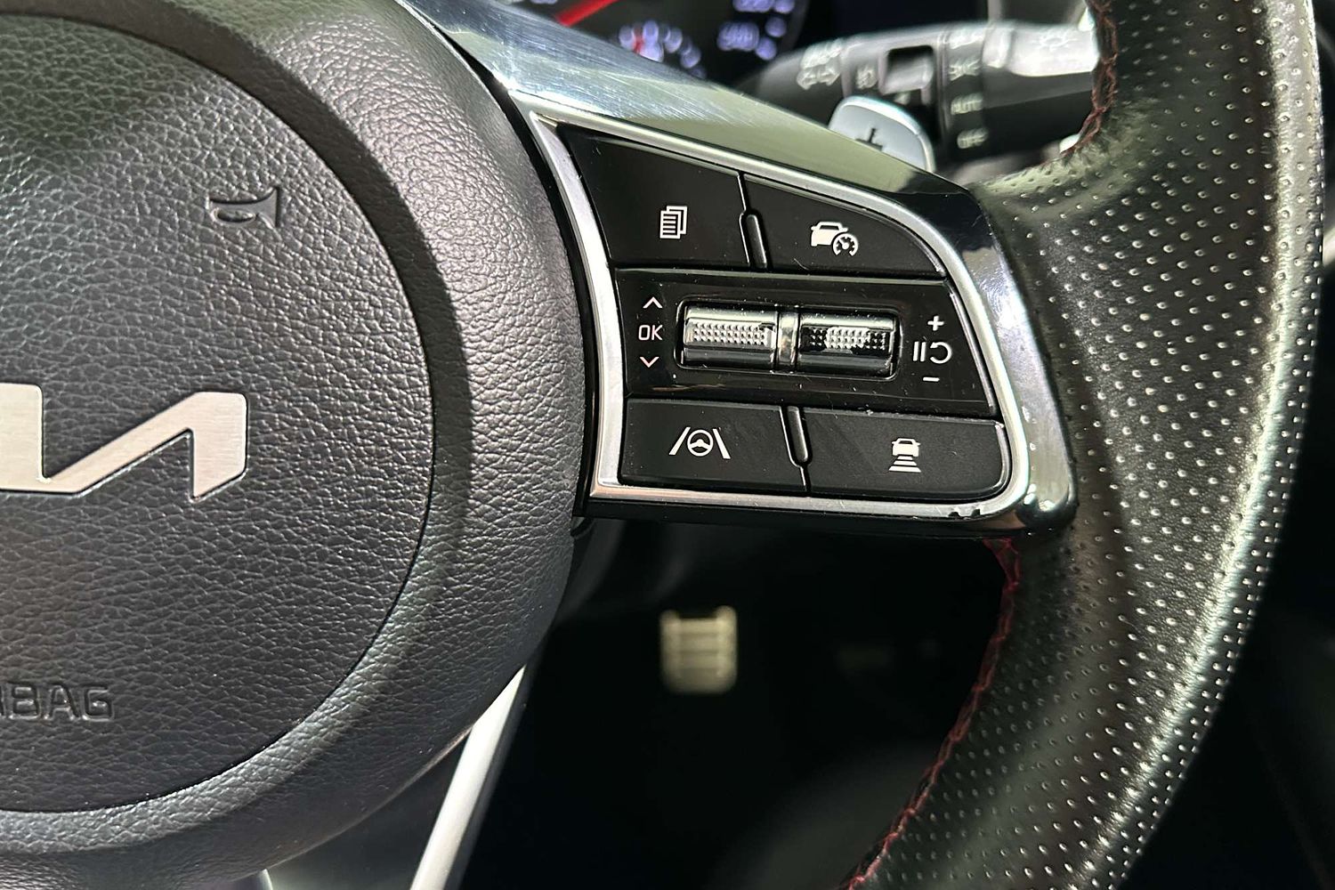 – Leather-appointed sports seats with red contrast stitching