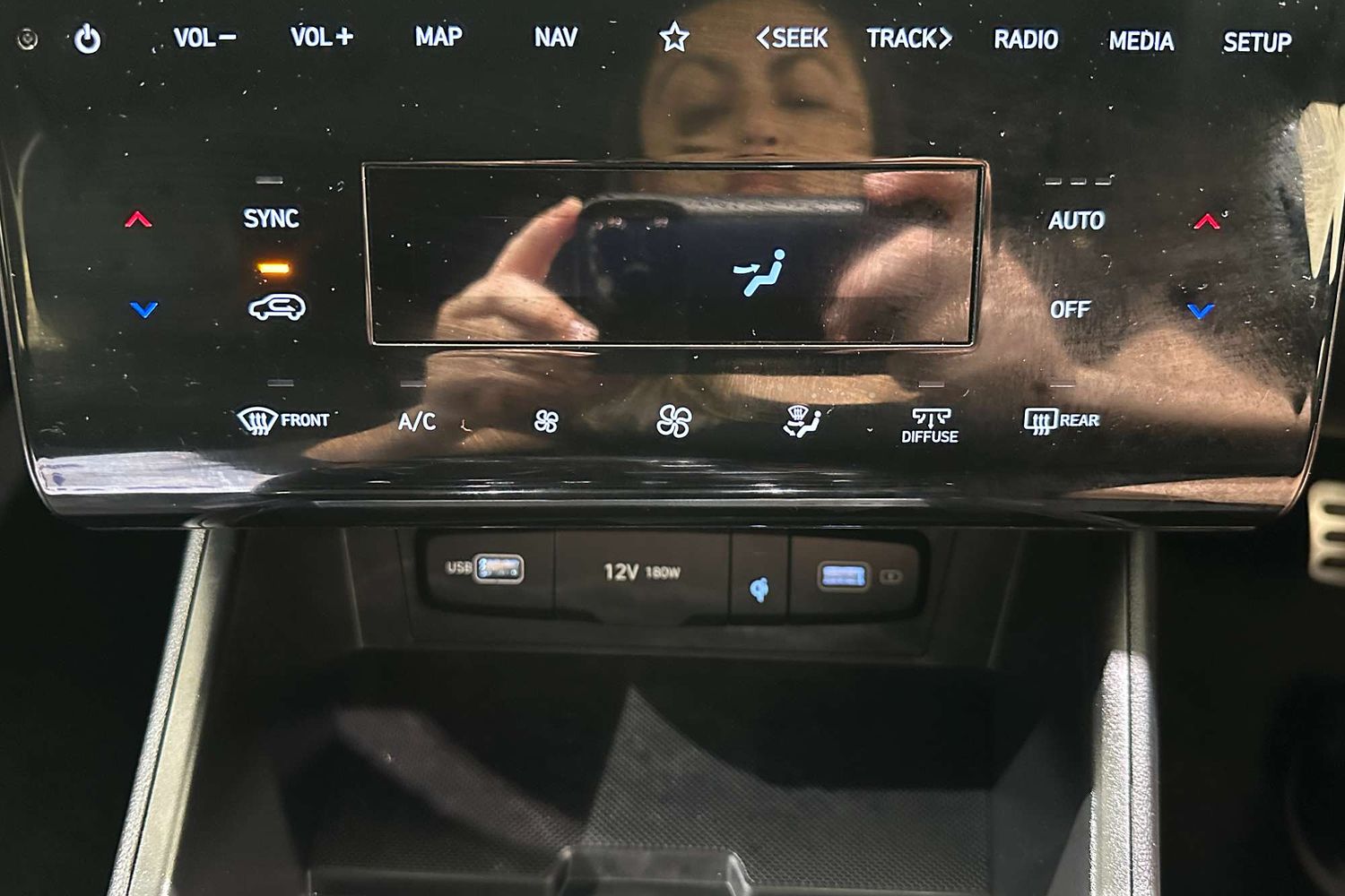 – USB charging and connectivity ports