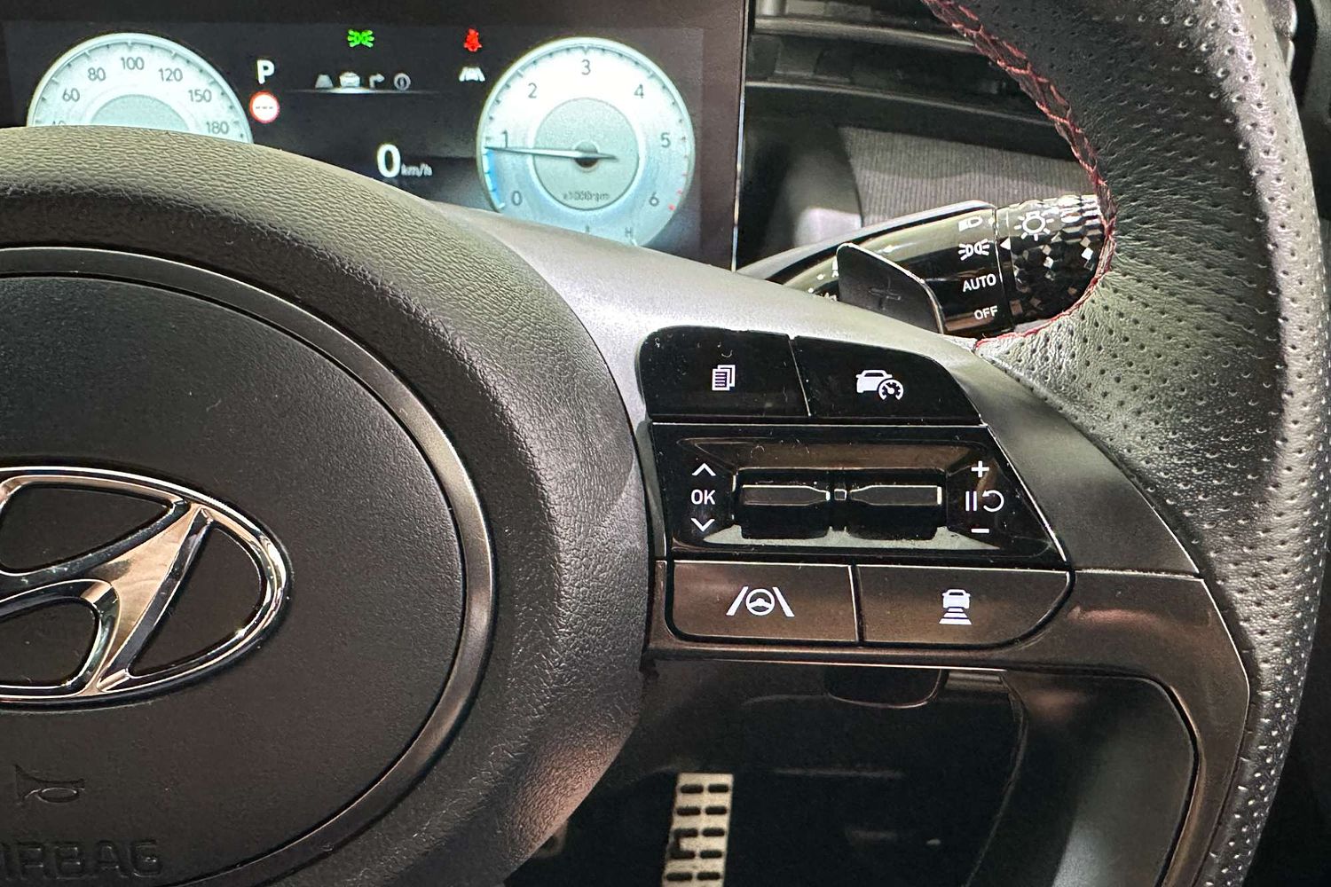 – Leather-wrapped sports steering wheel