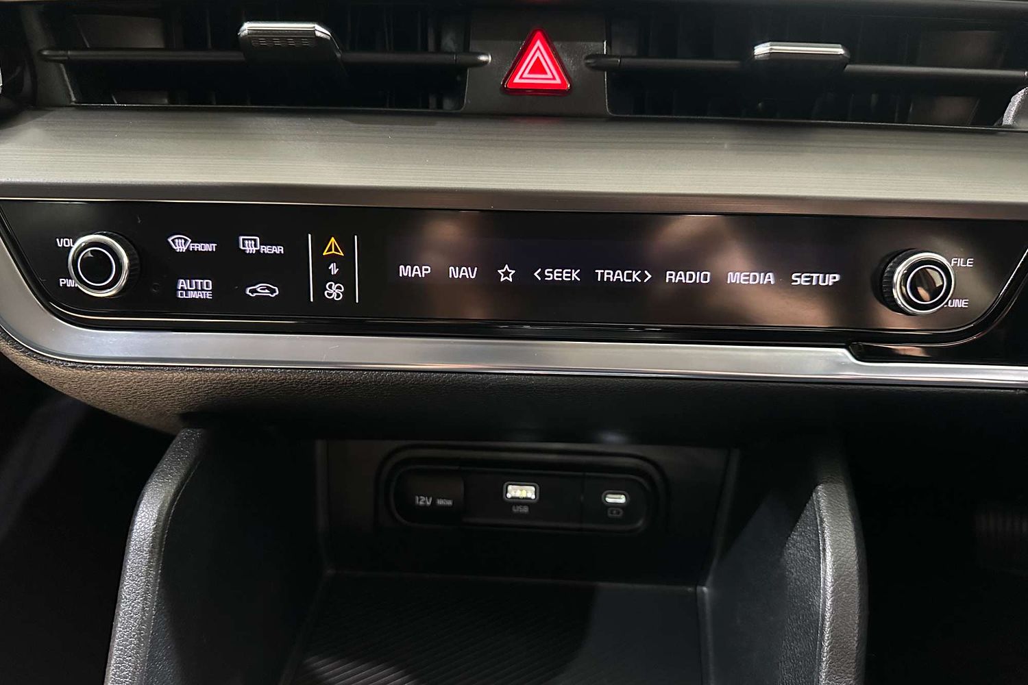 – USB charging and connectivity ports